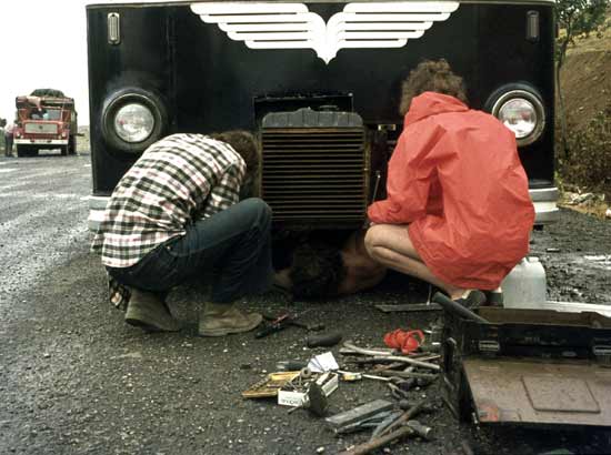 | now, this is not really a repair - it's an upgrade ! The bus was overheating, even in Germany - so before we left civilization behind I suggested we might buy some extra radiators and many yards of 1 inch hose - I think we bought three in the end in a German scrapyard ( the cont below. |