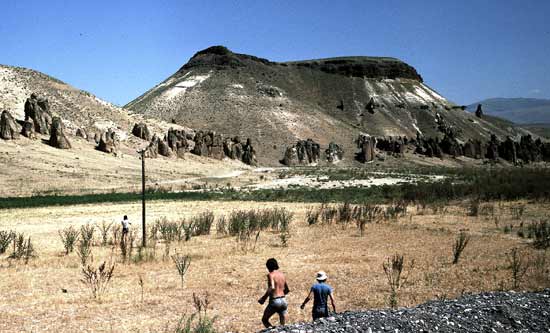 | It's a long way across Turkey - but you can't get lost. Just take the one road - it goes east. Trouble is, the coolest time to drive is early morning - dawn start, but you have the sun constantly in your face - and these roads were dusty. Mostly tarmac now I think - sights like this were common place. While stopped here the temp in the bus got to 170 farenheight. cont below. |