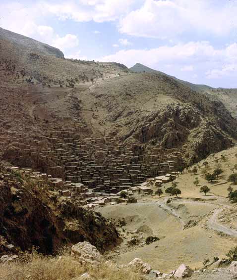 | Palangan - a view from the approach track - we made it in a short wheelbase landrover though severely scraped the front dif - Ken, our new friend from Kermanshah was pretty ...cont below. |