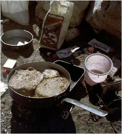 | ...looks horrible, but the nicest thing we had to eat up the top camp - dried mix which makes up into sausage meat - then fry it, then 'wow' - it tasted like sausages ! cont below. |