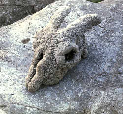 | ...this lovely thing we found at the bottom of one of the deep shafts - a calcited goats skull. How old ? - who knows. We gave it to the couple in Kermanshah, Ken and Francis who had helped us so much before and after the trip. Months later they had to flee fast - the Alatollah coup took over - and they he worked at the Bell US helicopter base stationed in Kermanshah. Suppose they were not short of quick transport ! So, Ken and Francis, if you ever drop by this site - many thanks, your place was a veritable oasis - pool and all. |