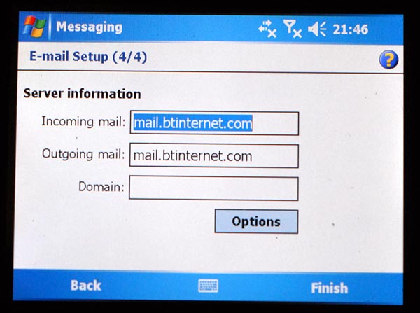 Click finish - and to your utter amazement, your phone will now send and recieve emails !