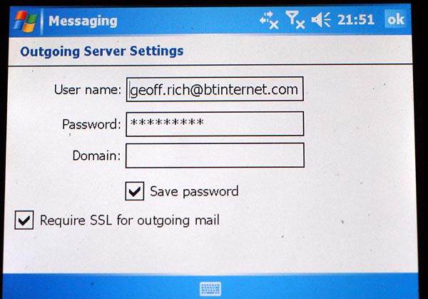 These accounts were set up and working with my old bt/yahoo email some years back - but Bt and Yahoo split - so the Yahoo is a new account - and BT setting altered slgihtly. Anyway - now I try to use the phone on my boat - with a Lebara card in for cheap data - it would download mail but not send ! )